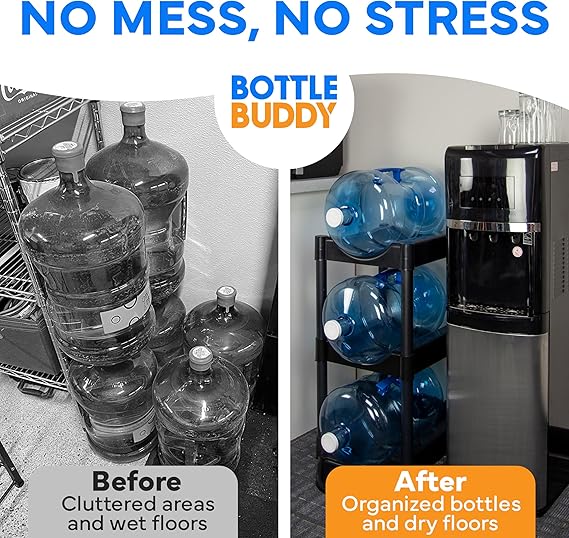 The 3 to 5-gallon water jug storage rack stands out due to its innovative design and capacity to accommodate up to 12 water jugs. This storage solution is purposefully engineered to hold multiple heavy bottles comfortably, ensuring that your water supply remains organized without compromising on stability. The rack’s sturdy construction employs high-quality materials that are not only durable but also resistant to wear and tear, providing long-term reliability for both home and workplace environments.