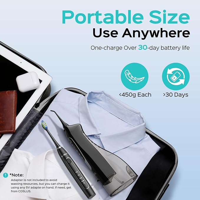 With the COSLUS Portable Water Flosser and Electric Toothbrush Combo, you’ll enjoy a dentist-level clean from the comfort of your home. Invest in your oral health today and feel confident in your smile!